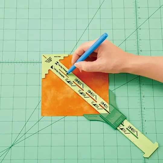 Med dette praktiske værktøj kan du hurtigt og nemt lave ½- og ¼-square trekanter til quilting og patchwork – helt uden at skære individuelle trekanter. Spar tid og undgå fejl, mens du skaber præcise, ensartede blokke til dine projekter.